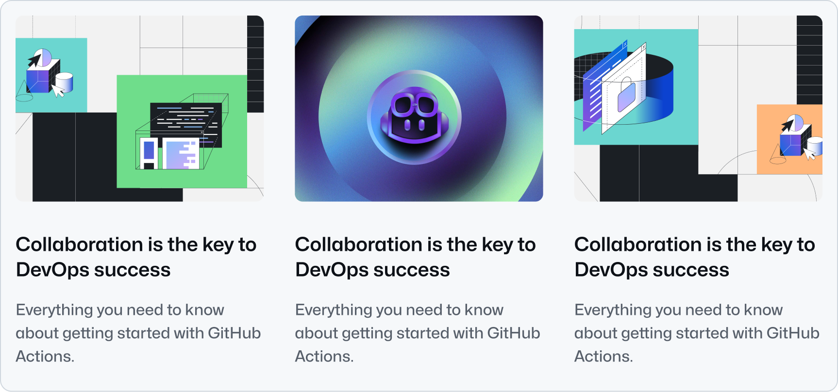 Cards should be used in small groups of three to five items, while Pillars can accommodate larger groups of up to nine items, or six if using images. The more items in a group, the less distinctive each individual element becomes.